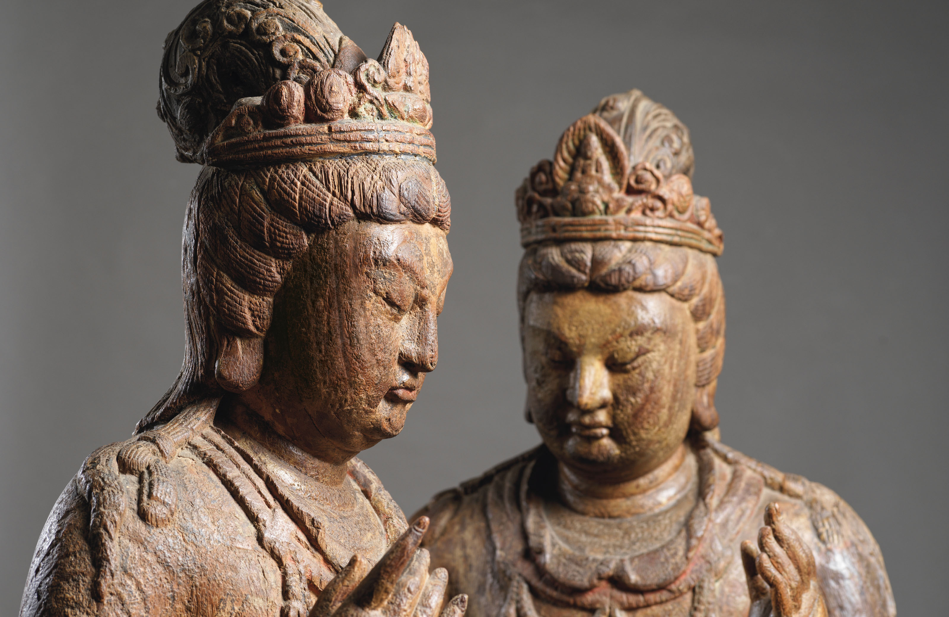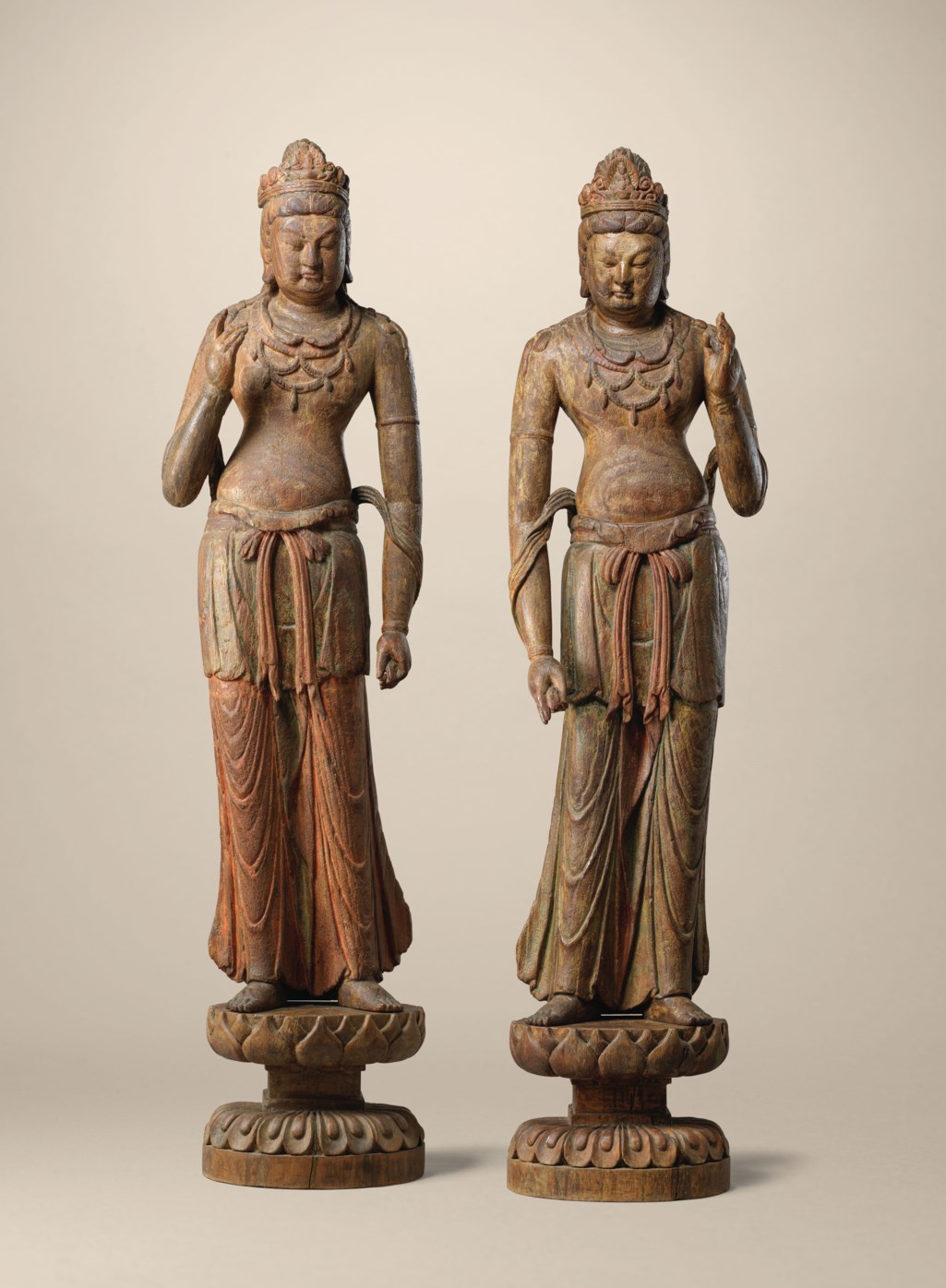 A Highly Important Majestic Pair Of Wood Figures Of Standing